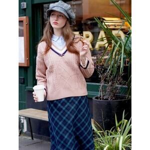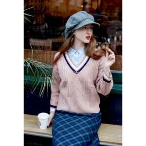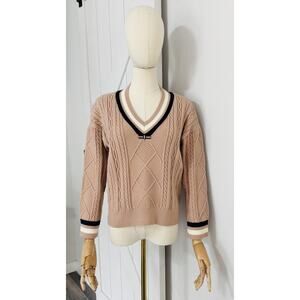 Miss Patina London Ivy League Jumper Sweater Cable Knit Beige One Size