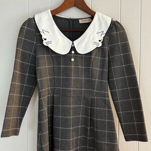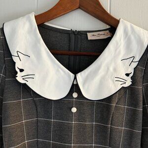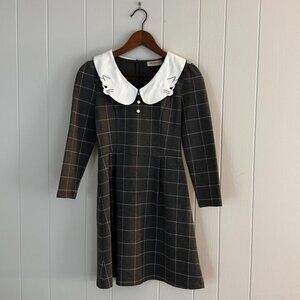 Miss Patina Women Embroidered Cat Collar Plaid Mini Dress Academia Preppy - S