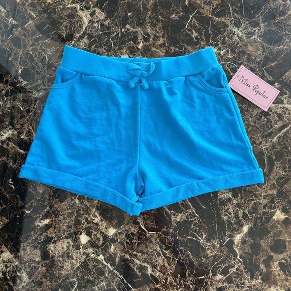 Miss Popular Girls Youth Blue Shorts Folded Hem Two Side Pockets Size 7/8