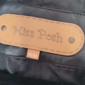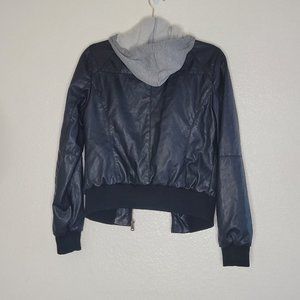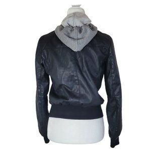 Miss Posh Faux Leather & Terry Black Gray Full Zip Hooded Jacket Size Medium
