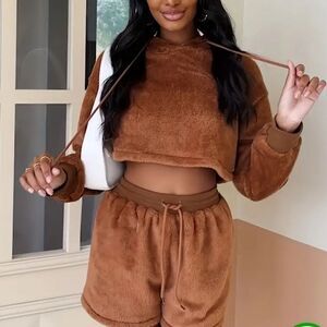 So Cozy...So Soft! This miss posh" set doubles as activewear and loungewear. Wear it to your favorite sporting event, to run errands, or to lounge around! It boasts a drawstring hoodie crop top and loose bottom shorts with pockets and a drawstring. Sure to be a go-to ootd!