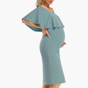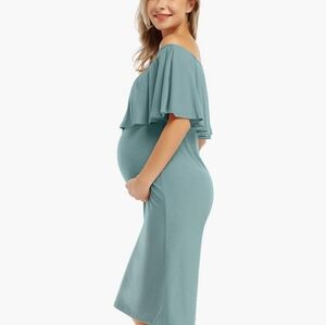 Miss Qee Green Off the Shoulder Maternity Dress Size L *Host Pick*