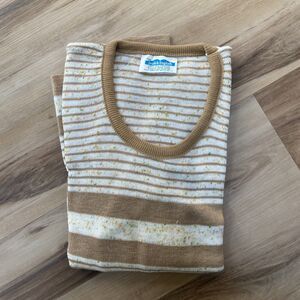 Miss Scotch English Sweater Womens Medium Brown Striped Long Sleeve Vintage USA
