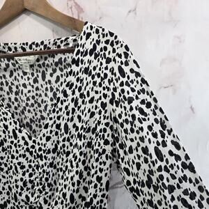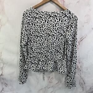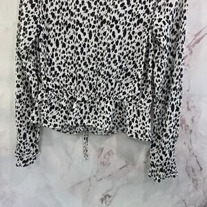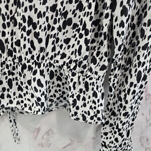 Miss Selffridge Shirt Womens Small White Black Blouse Peplum Tie Crop Cow Print
