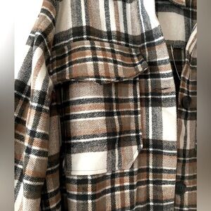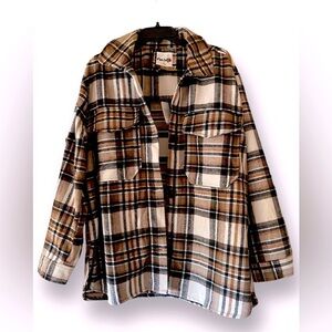 Miss Selfie Flannel PLAID Button Down Oversized Shirt Shacket Long Sleeve XL