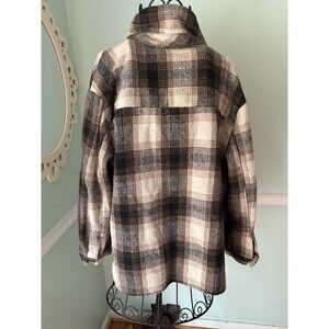 Miss Selfie Plaid Shacket Jacket Button Up Front Size Large Brown