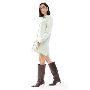 Miss Selfridge long sleeve drop waist pleated shirt dress in Mint in size L