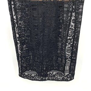 Miss Selfridge Dress Maxi Black Floral Lace Sleeveless Open Back Slits