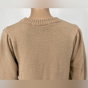 Miss Selfridge Puff Long Sleeve Knit Mini Dress Sweater Tan Color Size 4 Crew Neck Volume Sleeves Ribbed Trim Approximate Measurement:Pit to Pit 17,5”/Shoulder 14”/Sleeve 26”/Shoulder to Hem 31” Pre-owned