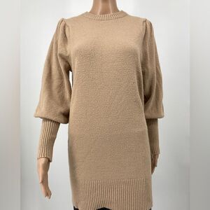 Miss Selfridge Puff Long Sleeve Knit Mini Dress SweaterTan Color Size 4