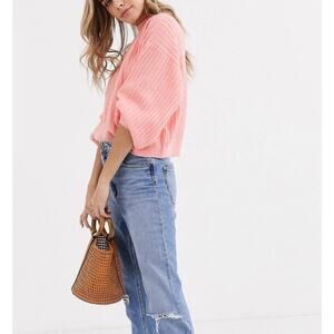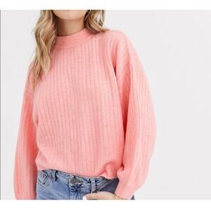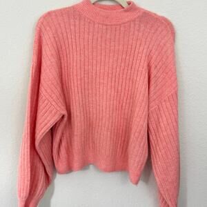 Miss Selfridge Women Ribbed Knit Sweater Size 4 Balloon Sleeves Mock Neck Orange