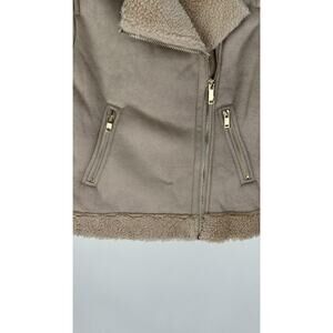 Miss Selfridge Womens Stone Mid Length Aviator Jacket Side Zip Size 2 NWT