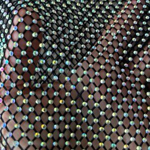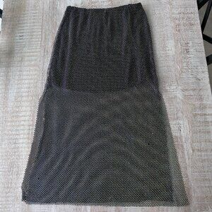 Miss Selfridge black diamante/beads mesh goth maxi skirt size 14