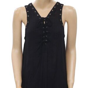 Miss Shop Studded Black Lace up Tank Mini Dress Beach Sleeveless M-8 NWT
