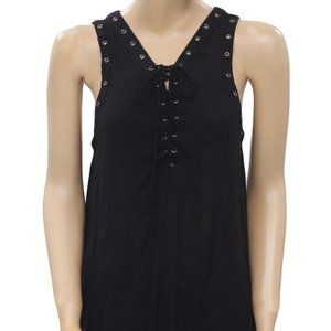 Miss Shop Studded Black Lace up Tank Mini Dress Beach Vintage M8 NWT