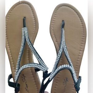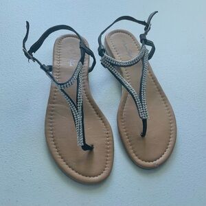 Miss Shop Sz7 Vegan Flat Rhinestone Sandals