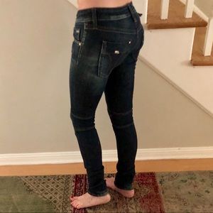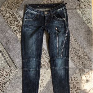 Very cool and sexy Miss Sixty blue jeans, size 24, “Rocker” style with zippers on left hip and thigh and reinforcement on knees. Skinny and low rise. Used only a handful of time and are as new.