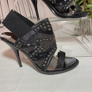 Miss Sixty Sade Black Leather Studs and Jeweled Slingback Size 38