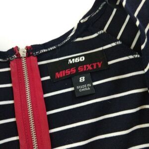 Miss Sixty Vintage 2000s Y2K Navy Blue Stripe Dress Size 8 Pin Up Sweetheart