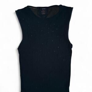 rhinestone mesh, black glitter, Italian luxury, stretchy top, retro glam, festival ready, sleeveless shirt, Y2K sparkle, clubbing outfit, gothic style