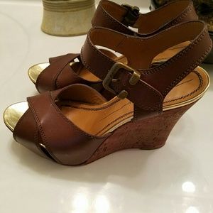 Miss Sixty brown leather open toe strappy sandal with platform and detail on platform
