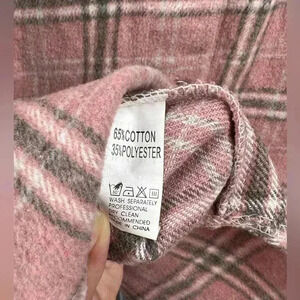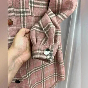 Miss Sparkling Button Down Pink White Plaid Silver Buttons Shirt Shacket Women M