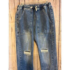 Miss Sparkling Distressed Elastic Waist drawstring Casual Denim Jeans Size Mediu