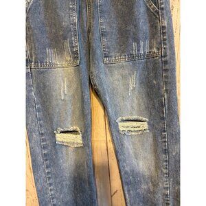 The Miss Sparkling Distressed Elastic Waist denim jeans in size medium are a stylish and comfortable choice for women. These high-rise, straight-leg jeans feature a drawstring closure and an elastic waistband for added convenience. The medium wash and distressed detailing add a trendy touch to the classic blue color, while the 28-inch waist size ensures a good fit for a range of body types. Made from cotton denim, these machine washable jeans from the Miss Sparkling brand are a versatile addition to any casual wardrobe. These cute jeans measure approximately 15 inches across the waist. Have a 10 1/2 inch rise and a 29 1/2 inch inseam. Distressed in just the right places very cute in excellent condition.
