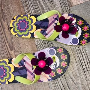Miss Trish Floral Flip Flop Sandal Size 8 black stain on the right strap