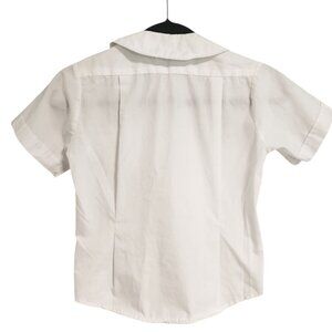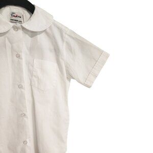 A classic white uniform button-down blouse for young girls. With shorts sleeves & a cute peter pan collar. Perfect for a school uniform or with some jeans for an easy outfit.
