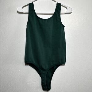 Miss Valley Bodysuit Sleeveless Crewneck Zip Front Ribbed Knit Green S/M
