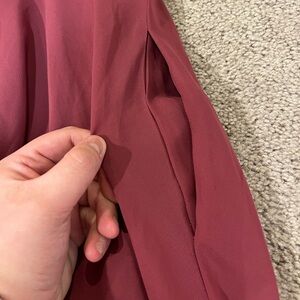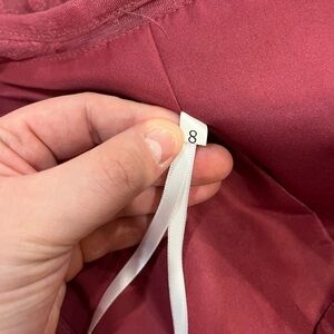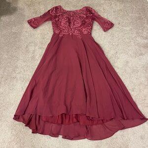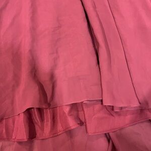 New with tags! Beautiful dress in a unique pink color! Top has appliqués. Pockets are on both sides of the hip! Back is a lace up style and the sleeves are sheer. Inside is padded, so no need to wear a bra. Pit to pit measures 18.5 inches. Length measures 45.5 inches. Perfect for a wedding or a ball! Offers welcome!