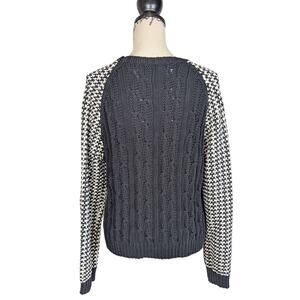 Miss Wu Mixed Knit Sweater Black & Ivory Houndstooth Cable Knit Size XL