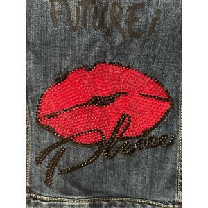 Miss bonbon Girl Dark Blue Graphic Print Denim Jacket Size XL