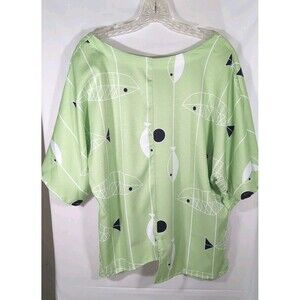 Miss look Blouse Fish Print Short Sleeve Pocket Detail Womans Size XL