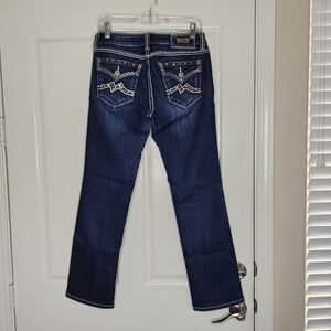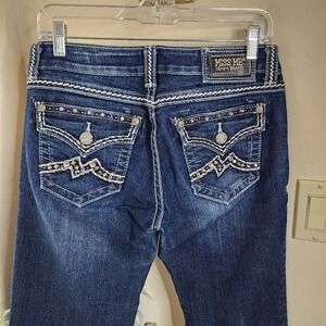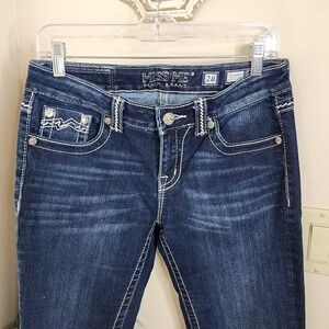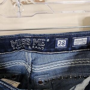 Miss Me denim jeans in size 28 featuring embellishments on back pockets. Style is Easy Capri with a mid rise and 26.5" inseam. Pre-owned in excellent condition with no flaws or stains. Please reach out if you have any questions!