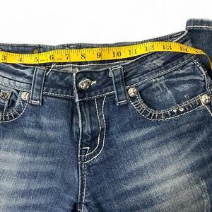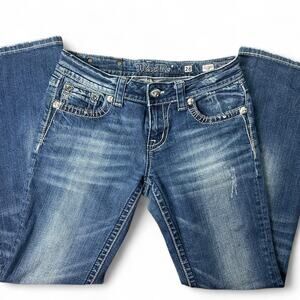 Miss Me blue bootcut jeans with rhinestone detailing fleurdelis
