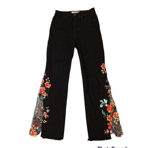 The product is a pair of Miss Me bootcut jeans in black size 28, featuring embellished pockets. These Y2K stylish jeans are designed for women and are perfect for adding a touch of flair to any outfit. The bootcut style offers a flattering silhouette, while the embellished pockets add a unique and trendy element to the overall look. Perfect for a casual day out or a night on the town, these jeans are sure to make a statement.