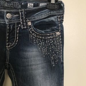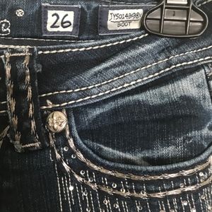 Good condition size 26...waist all around approximately 29.5”.......inseam 30 1/4”...Outseam 38.5”...leg opened 16”.......front rise 7.5”...back rise 12”...hips all way around approximately 35”....