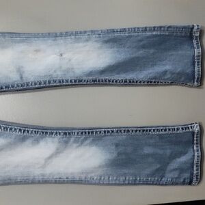 they are in pre-owned condition they do show some signs of wear there is a small stain on the knee I have tried to show it in pictures it is a very faint it is missing some rhinestones off the pockets through the middle they're not easy to notice I tried to show them and pictures as always I do love offers if you have any questions please ask and have an amazing day s20