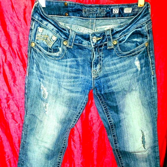 Selling my old Miss Me capris they are to small for me now and they are still in good condition the holes on the front on both legs were there when I bought them, that's how they came, size 27.