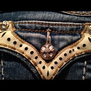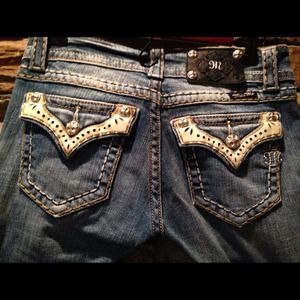 These are a really cute pair of miss me boot cut jeans with leather detail on the pockets they are a very original pair! That have been worn twice max and are in great condition!