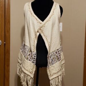 Miss me vest cardigan fringed embroidered cream
