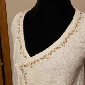 Beautiful cream cardigan vest with tapestry style embellishment and fringe with tan embroidery so pretty perfect festival boho look or create your own perfect look. Size small.