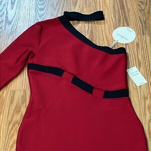 Miss Circle Asymmetrical Red Black Body-con with midriff cutouts, Medium