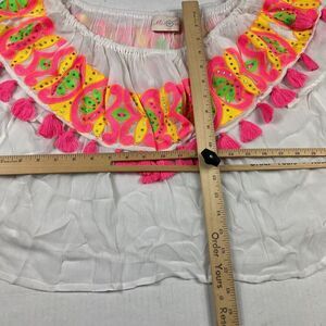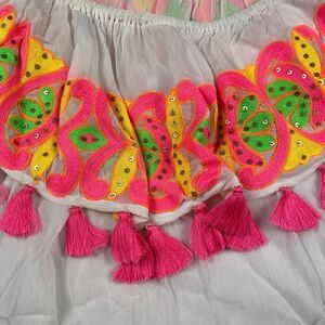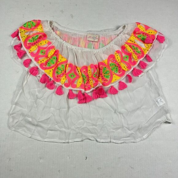 Miss June Paris White Boho Tassel Crop Top S/M Embroidered Festival Resort Shirt