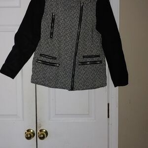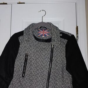 Miss London wool blend moto zip up herringbone jacket Sz L