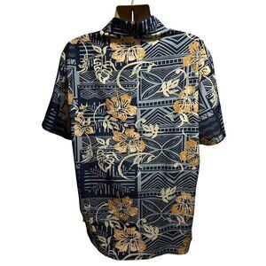 MissLook Mens Blue Hawaiian Aloha Floral Button Up Pullover Shirt 2XL Stretch Linen Blend. Great Pre-Owned Vintage Condition Gently Worn. Ships from smoke free home.