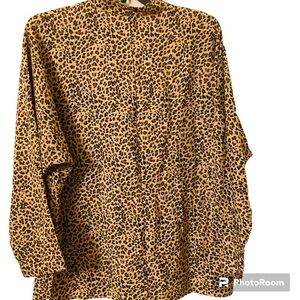 MissLook Women’s Plus Size 2xl Long Sleeves Pullover Cheetah Print Blouse. Chinese collar, two button up closure front, long sleeves, pullover style. Size 2 xl. Cotton polyester material, machine washable. In good condition. Mob wife trend, classic, animal print.