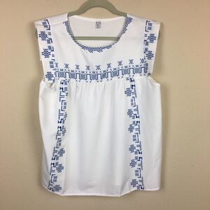 Preloved. Women’s size medium Small spot near collar ( see photos) Blue white Milkmaid